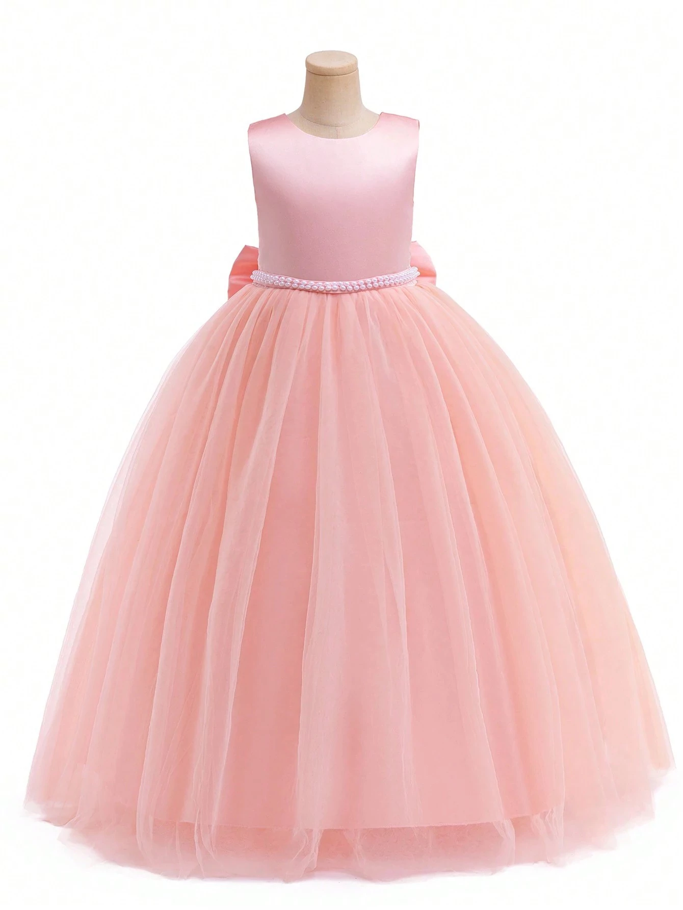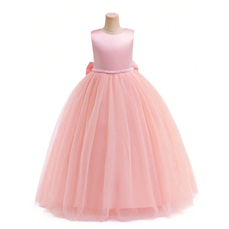 Menta hercegnős szatén felső gyöngyös derékrésszel nagy masnis kislány alkalmi ruha koszorúslány ruha