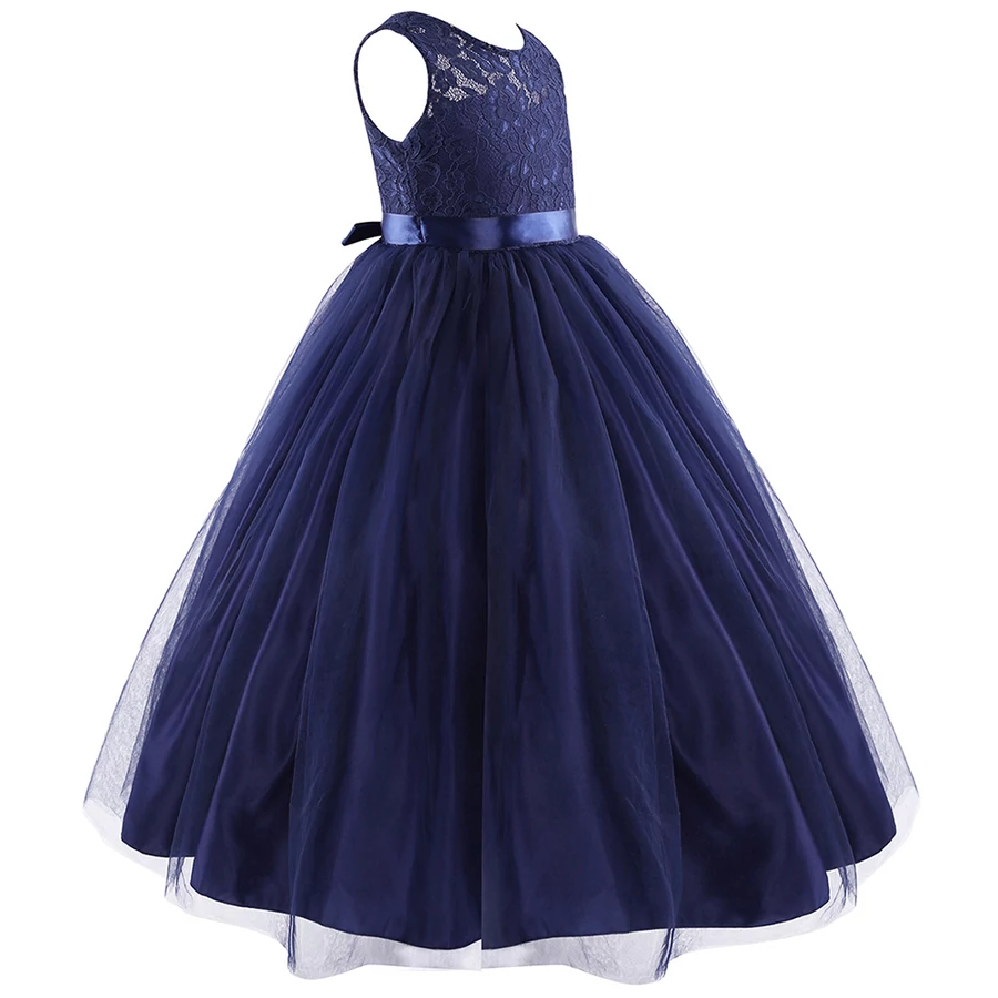 Sötétkék kövecskés sifon maxi kislány ruha koszorúslány ruha báli ruha